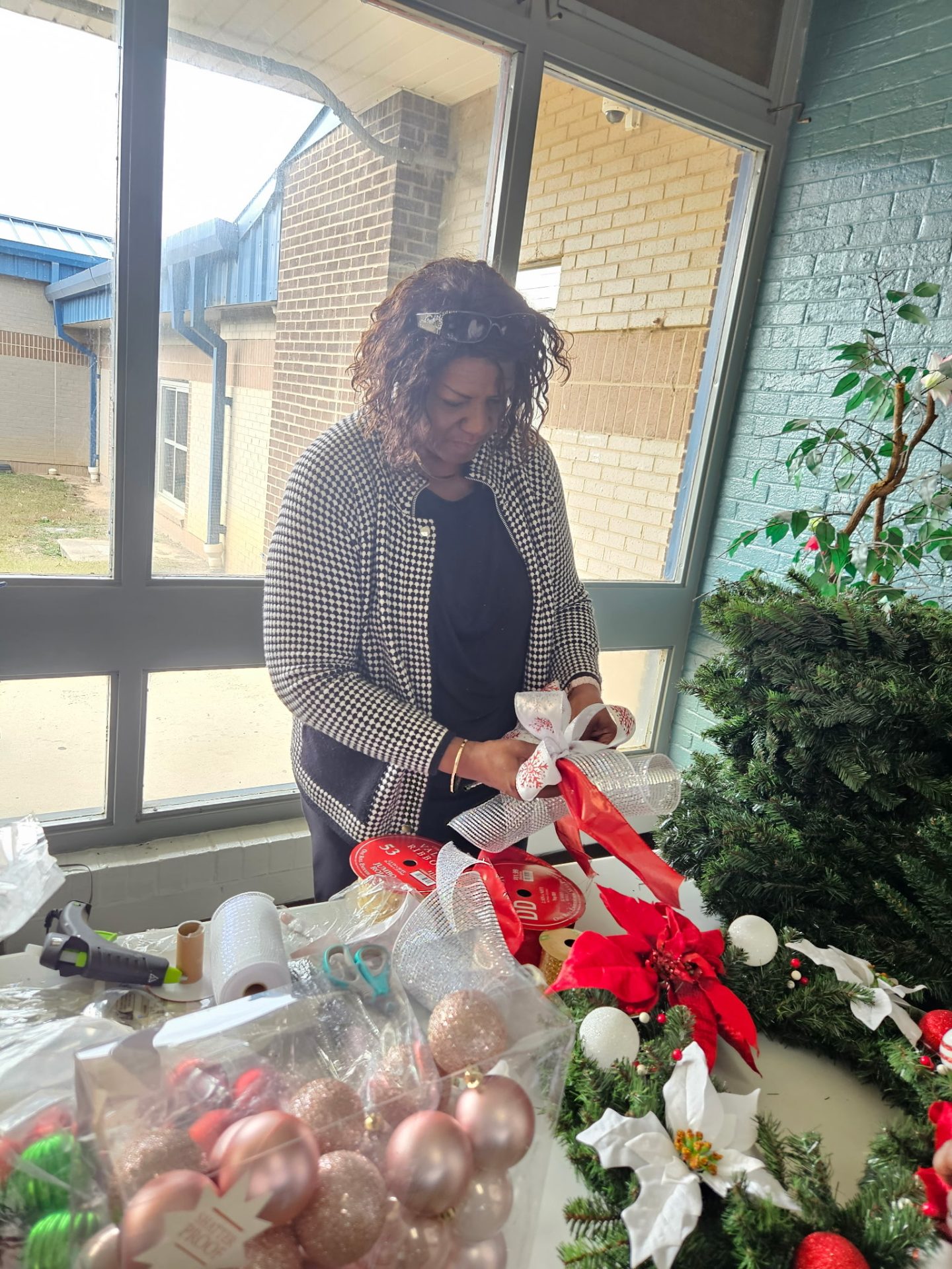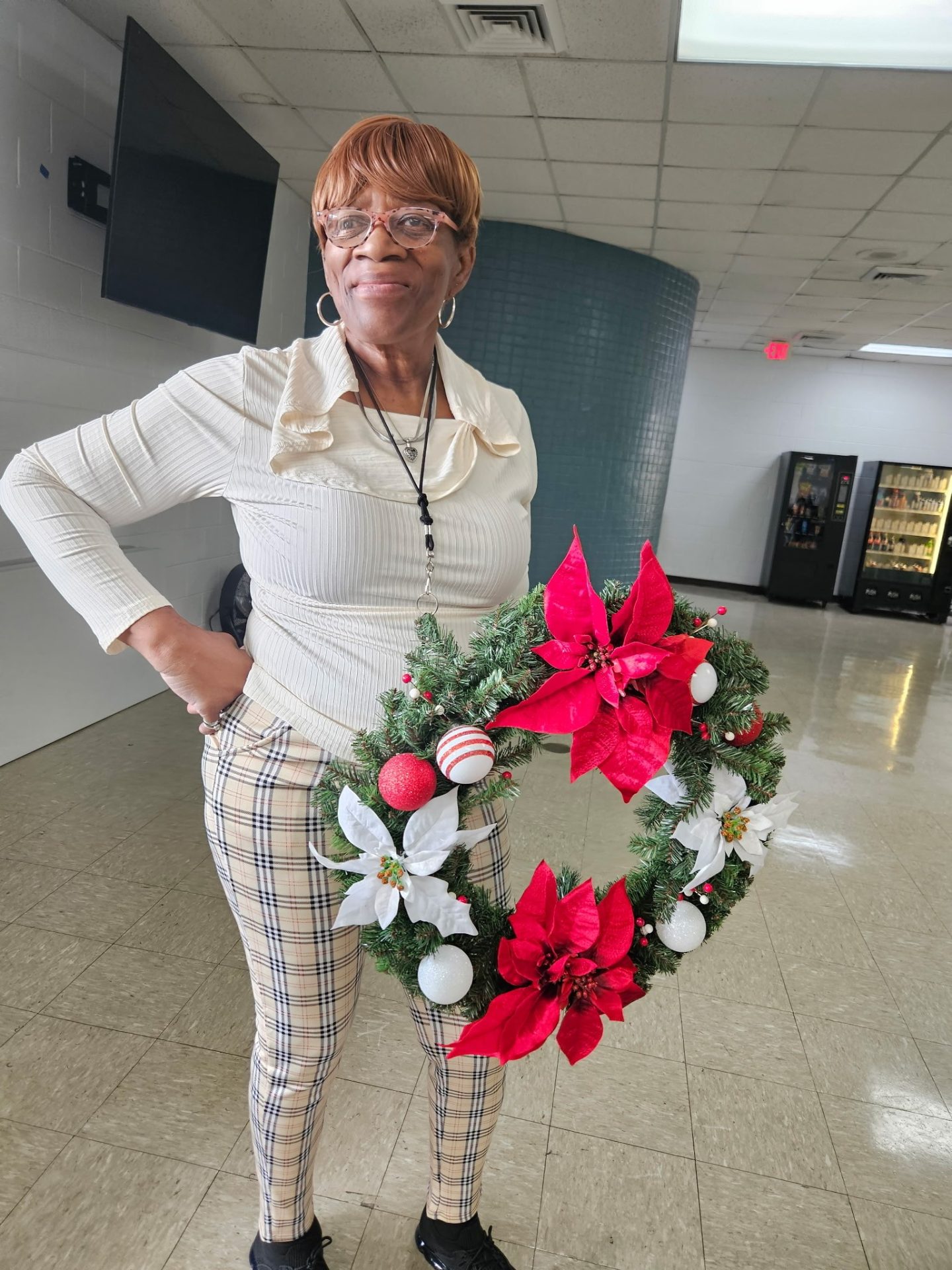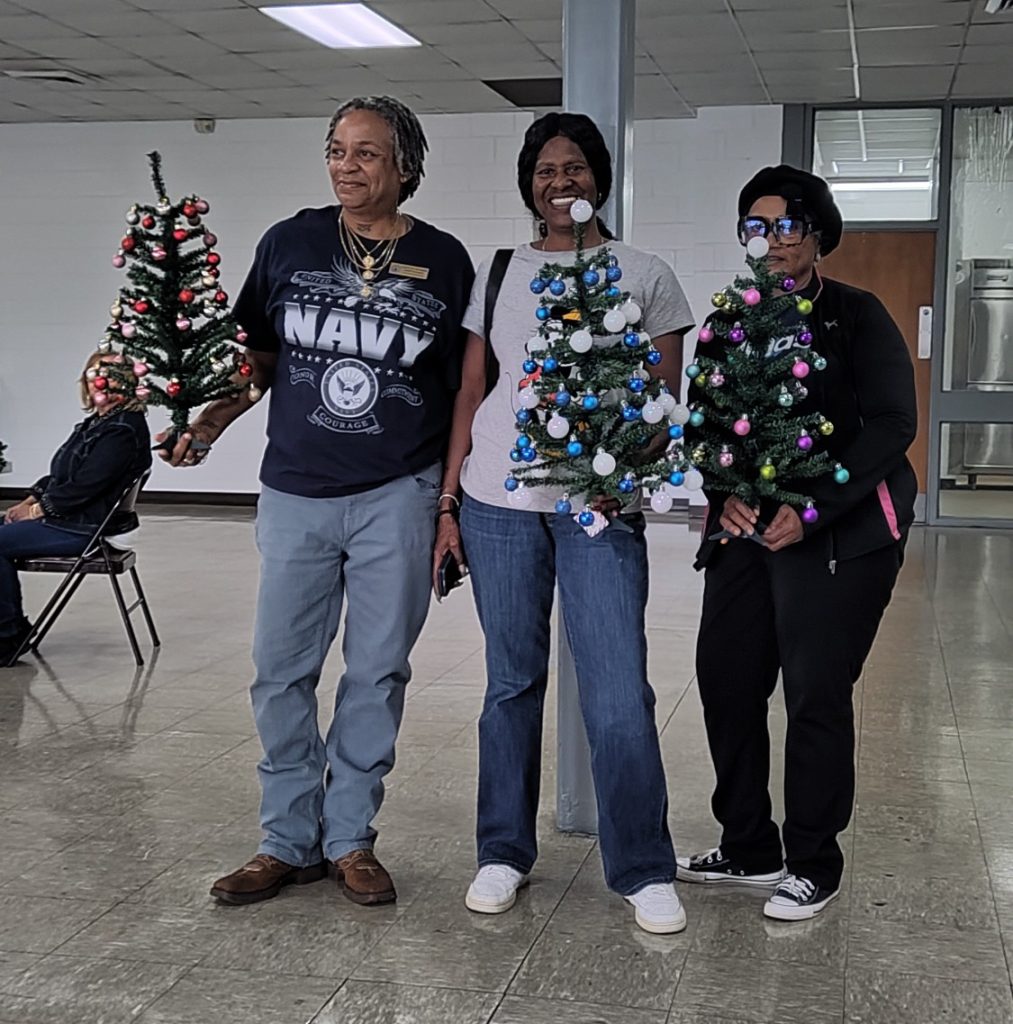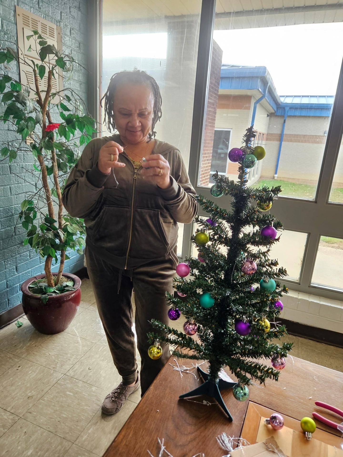 In November 2025, the Vance County Arts Council returned to the Vance County Senior Center to host a special holiday-themed class for seniors and veterans. The room was full of festive spirit as participants came together to create their own Christmas wreaths and miniature Christmas trees, turning the center into a cheerful workshop of lights, greenery, and holiday music. The class offered a warm, welcoming space for those who have given so much to our community and our country to relax, connect, and enjoy a creative afternoon.